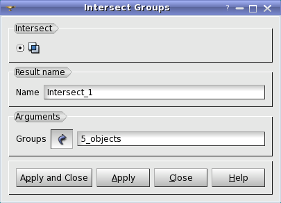 In the New Entity menu select the Group - Intersect Groups item. The following dialog box will appear: