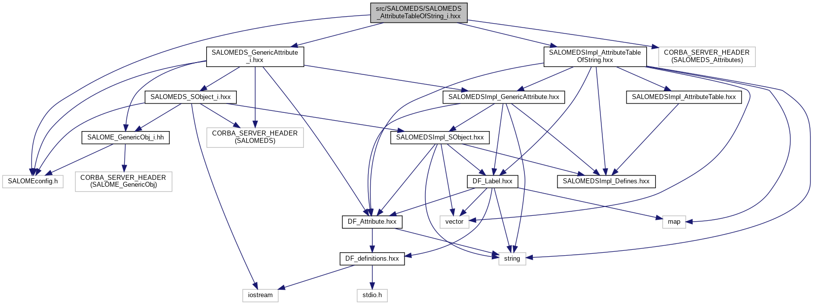 Include dependency graph for SALOMEDS_AttributeTableOfString_i.hxx: