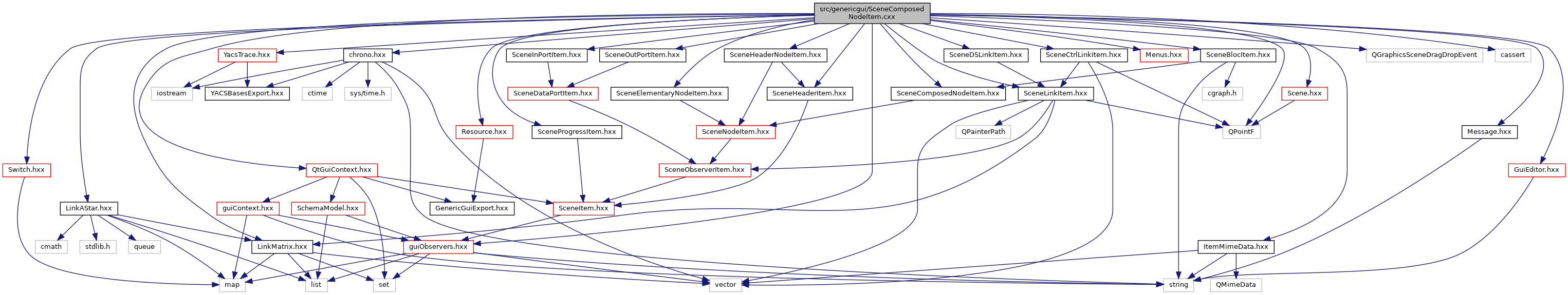 #include "chrono.hxx"#include "SceneBlocItem.hxx"#include "SceneComposedNodeItem.hxx"#include "SceneElementaryNodeItem.hxx"#include "SceneHeaderItem.hxx"#include "SceneHeaderNodeItem.hxx"#include "SceneInPortItem.hxx"#include "SceneOutPortItem.hxx"#include "SceneLinkItem.hxx"#include "SceneDSLinkItem.hxx"#include "SceneCtrlLinkItem.hxx"#include "SceneProgressItem.hxx"#include "LinkMatrix.hxx"#include "LinkAStar.hxx"#include "ItemMimeData.hxx"#include "QtGuiContext.hxx"#include "Menus.hxx"#include "Message.hxx"#include "guiObservers.hxx"#include "GuiEditor.hxx"#include "Scene.hxx"#include "Switch.hxx"#include <QPointF>#include <QGraphicsSceneDragDropEvent>#include <cassert>#include "Resource.hxx"#include "YacsTrace.hxx"